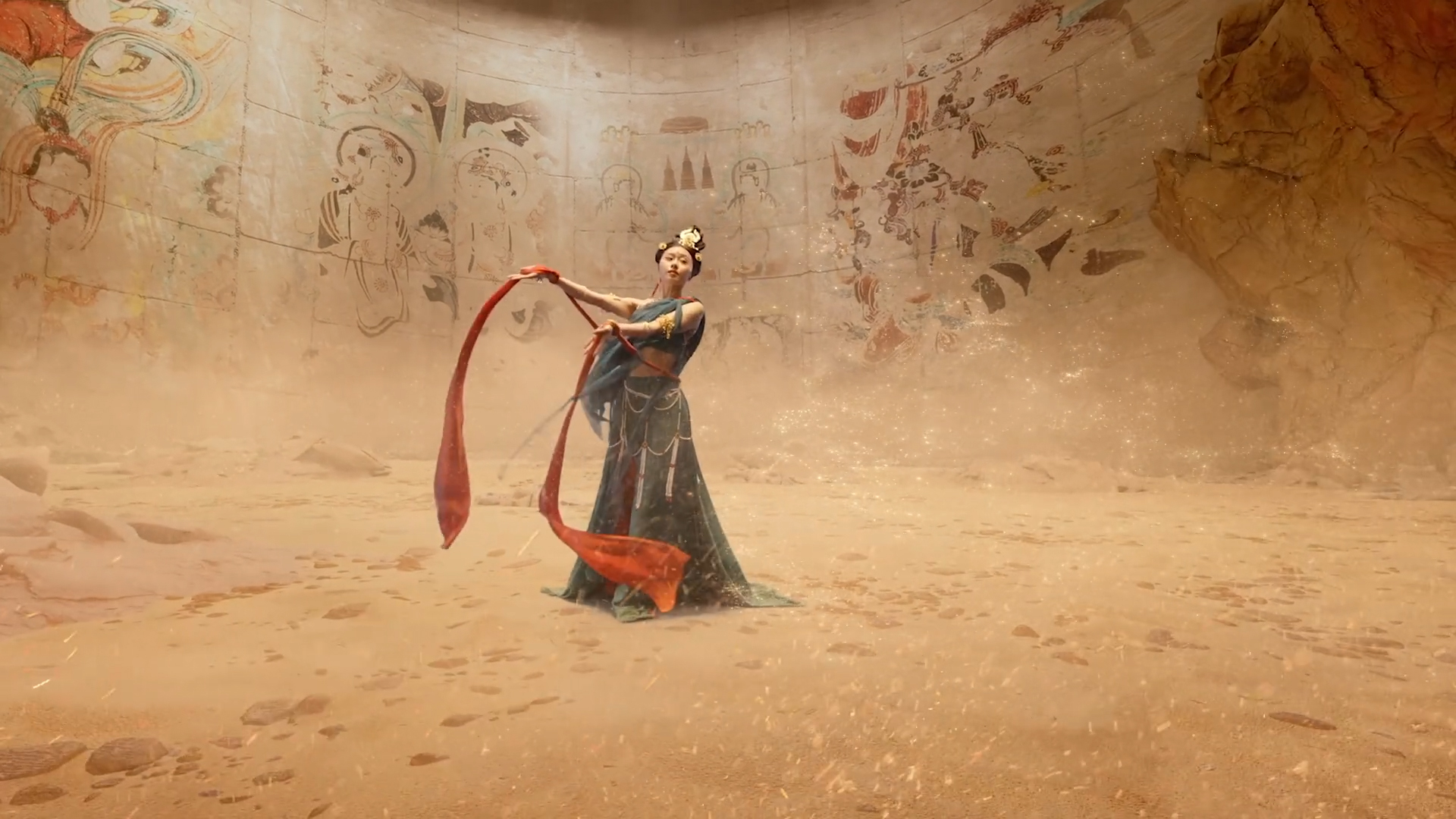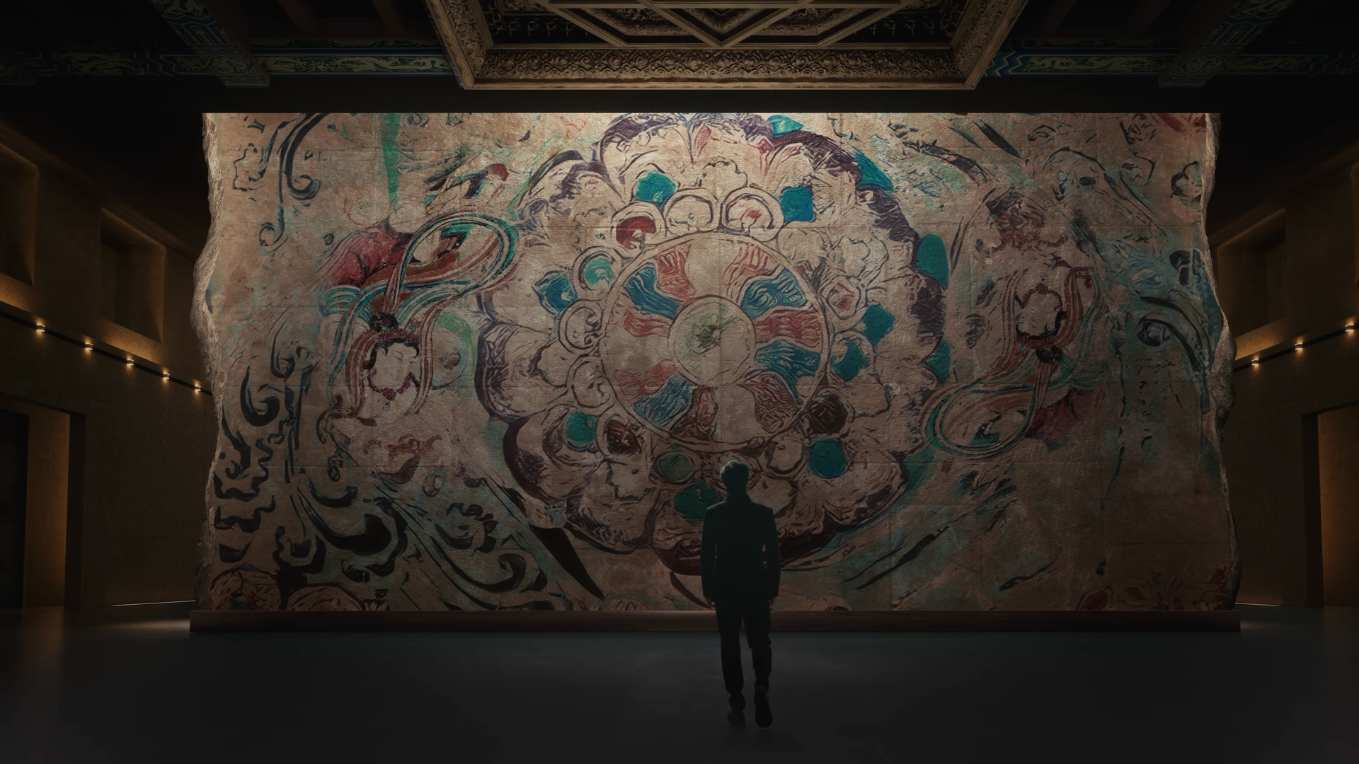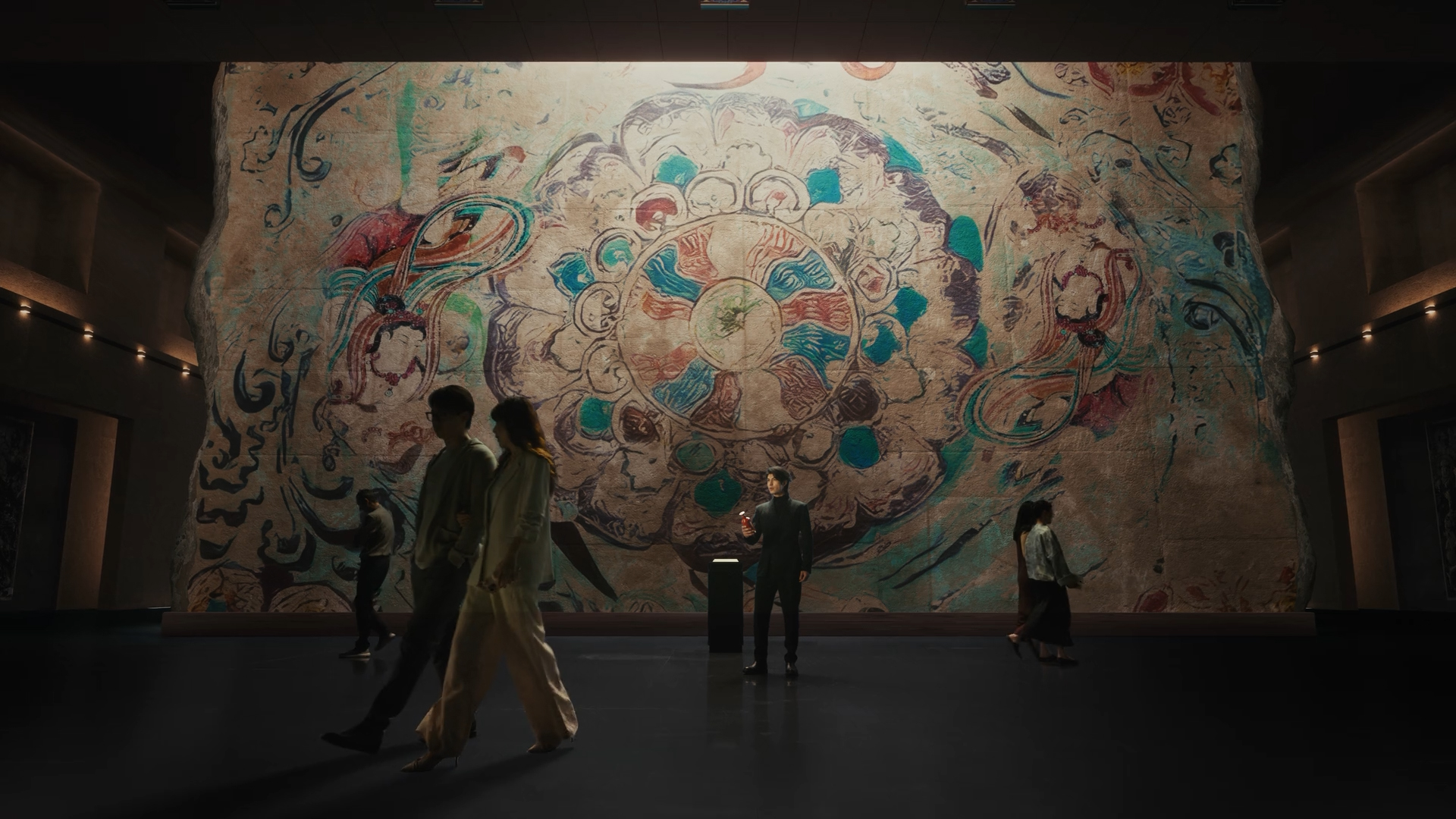 The video moves fluidly between reality and imagination. It begins in a quiet art museum, where viewers follow the protagonist’s gaze into the murals. The murals awaken the senses and draw the audience out of the physical world, transporting them into the grand Dunhuang epic. This seamless transition from reality to imagination transforms the product into a key that unlocks the imagination across time and space. Through shifting light and shadow and an immersive soundscape, the video guides viewers from experiencing the product’s tangible qualities to appreciating its symbolic and emotional depth, reviving the artistic essence of landscapes and music through digital expression.