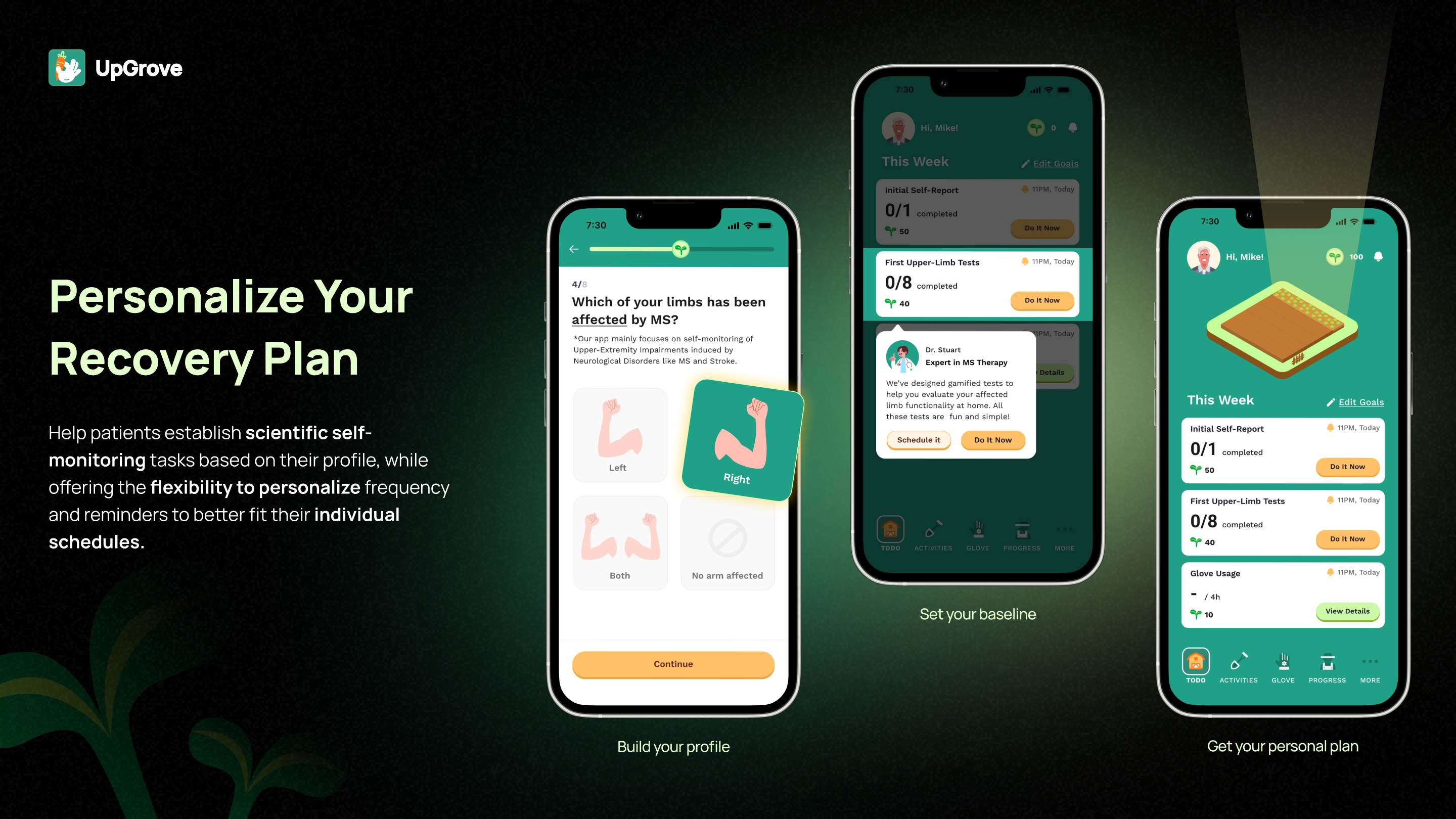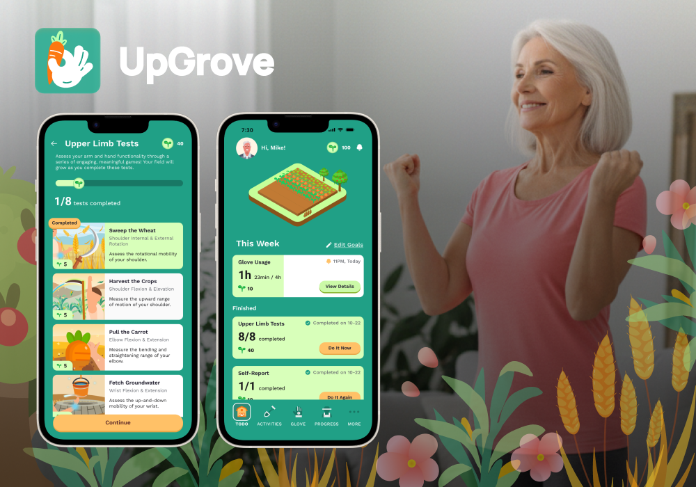In short, UpGrove reframes long-term upper-limb rehabilitation from a burdensome clinical routine into an empowering, meaningful journey of growth—helping patients regain confidence, agency, and hope, while giving clinicians unprecedented visibility into everyday recovery.