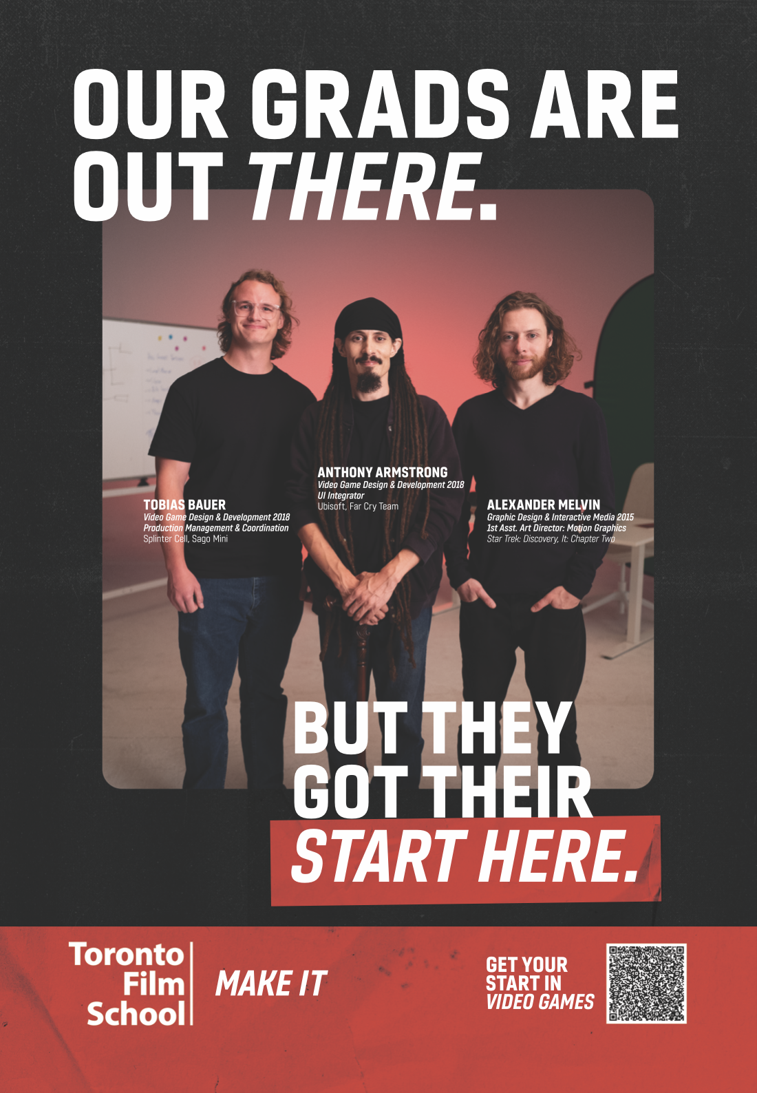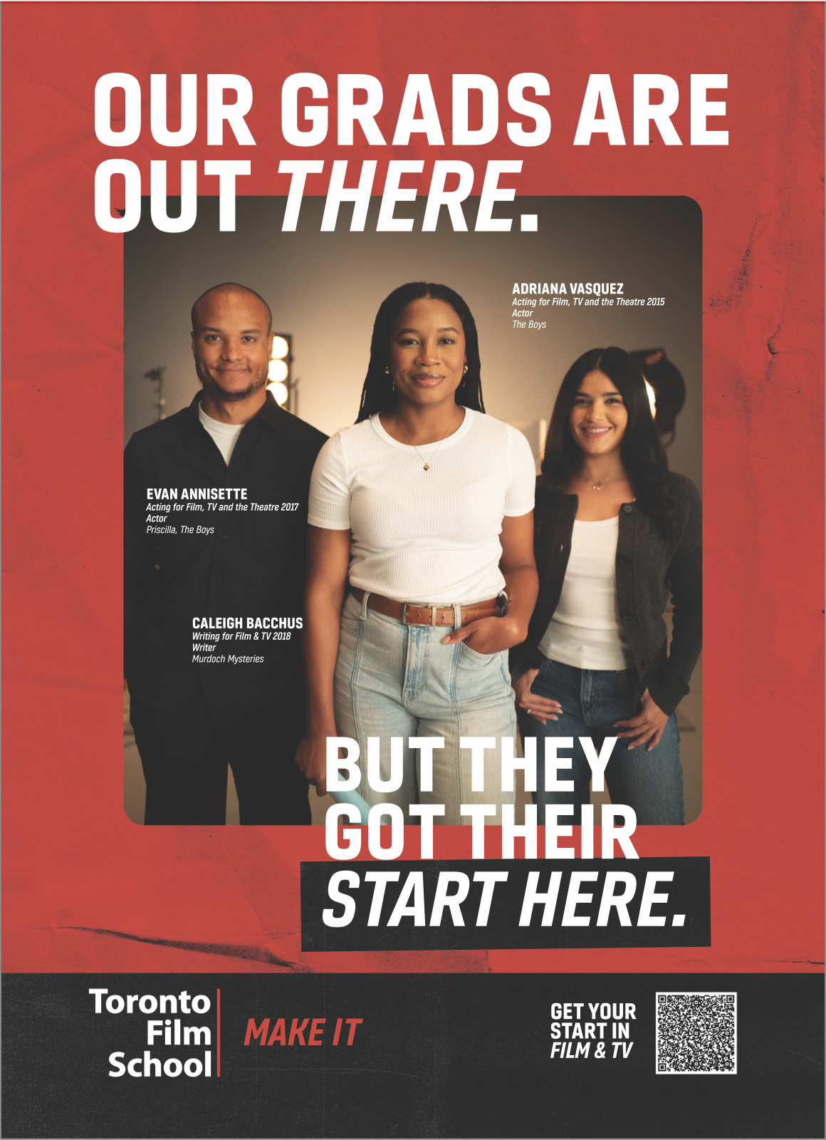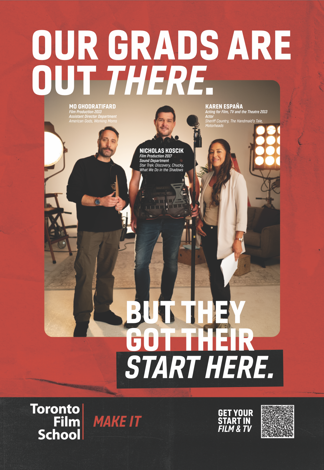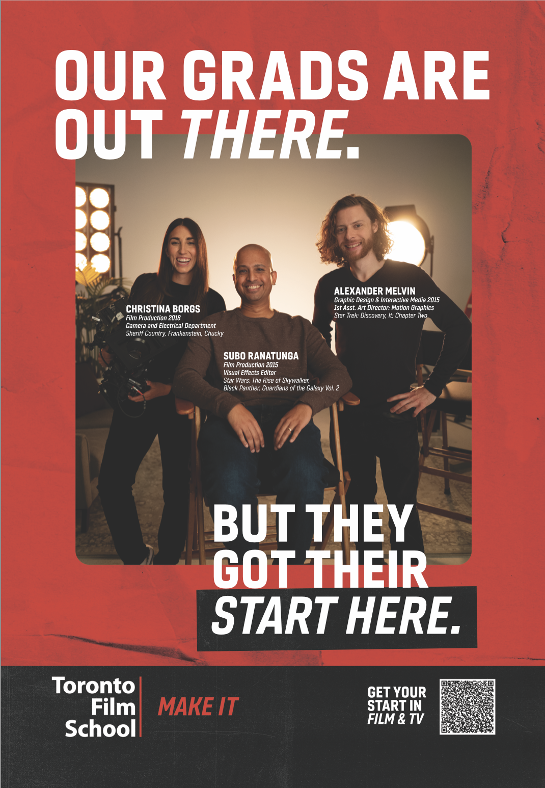 As uncertainty around creative careers grew, Toronto Film School needed to prove the real value of its education. Make It was an integrated campaign built around the success of its alumni, highlighting graduates actively working across the entertainment and creative industries.