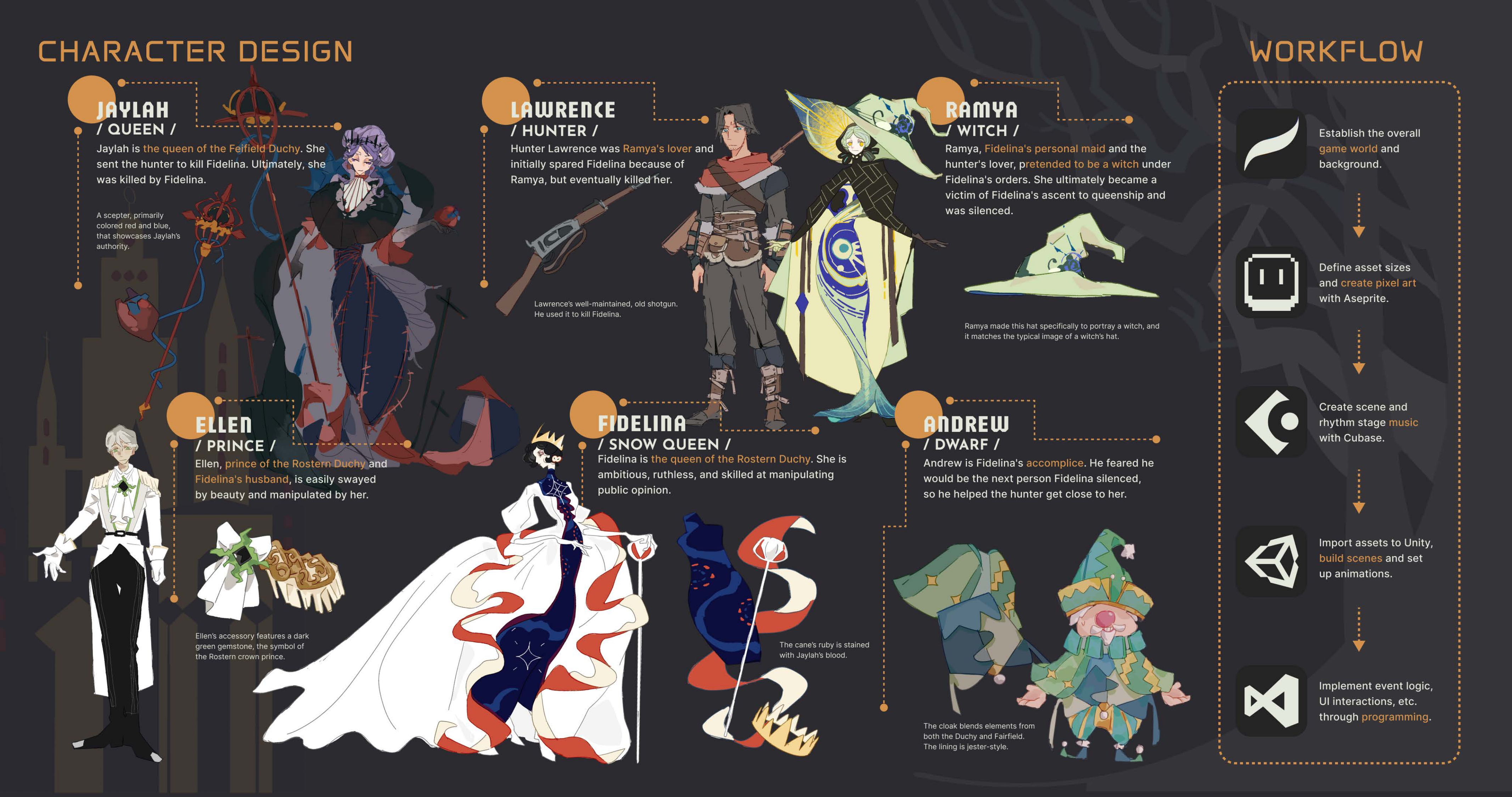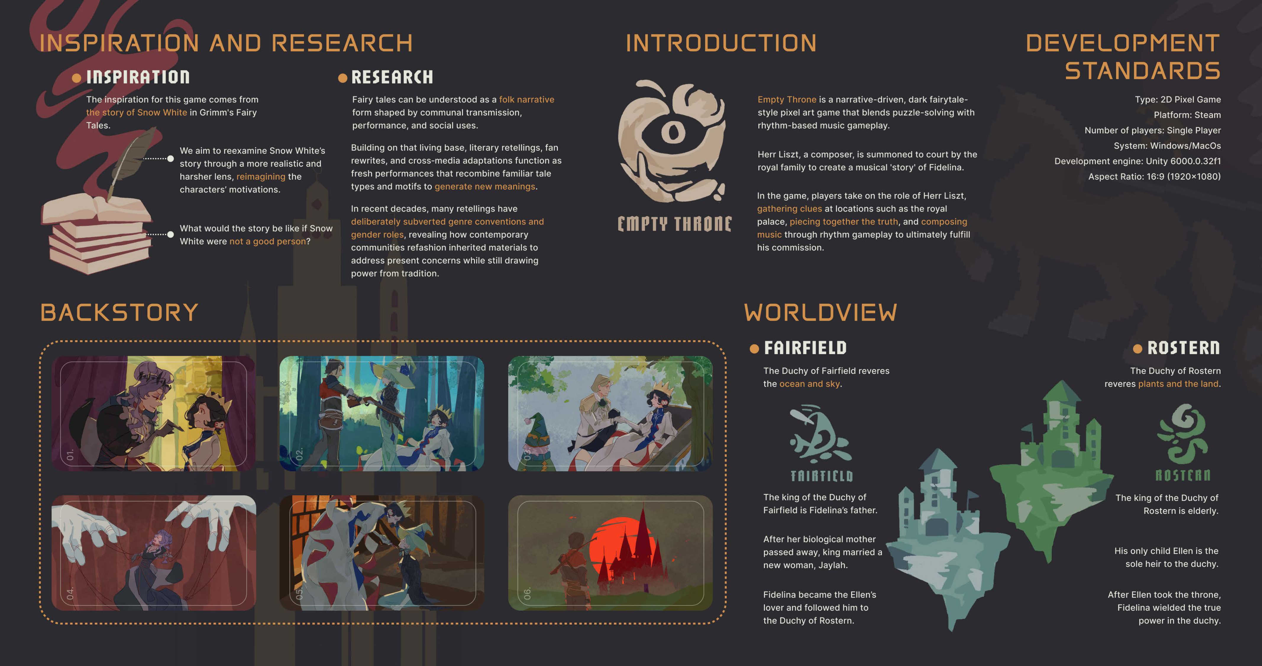 Empty Throne is a narrative-driven, dark fairytale-style pixel art game that blends puzzle-solving with rhythm-based music gameplay.